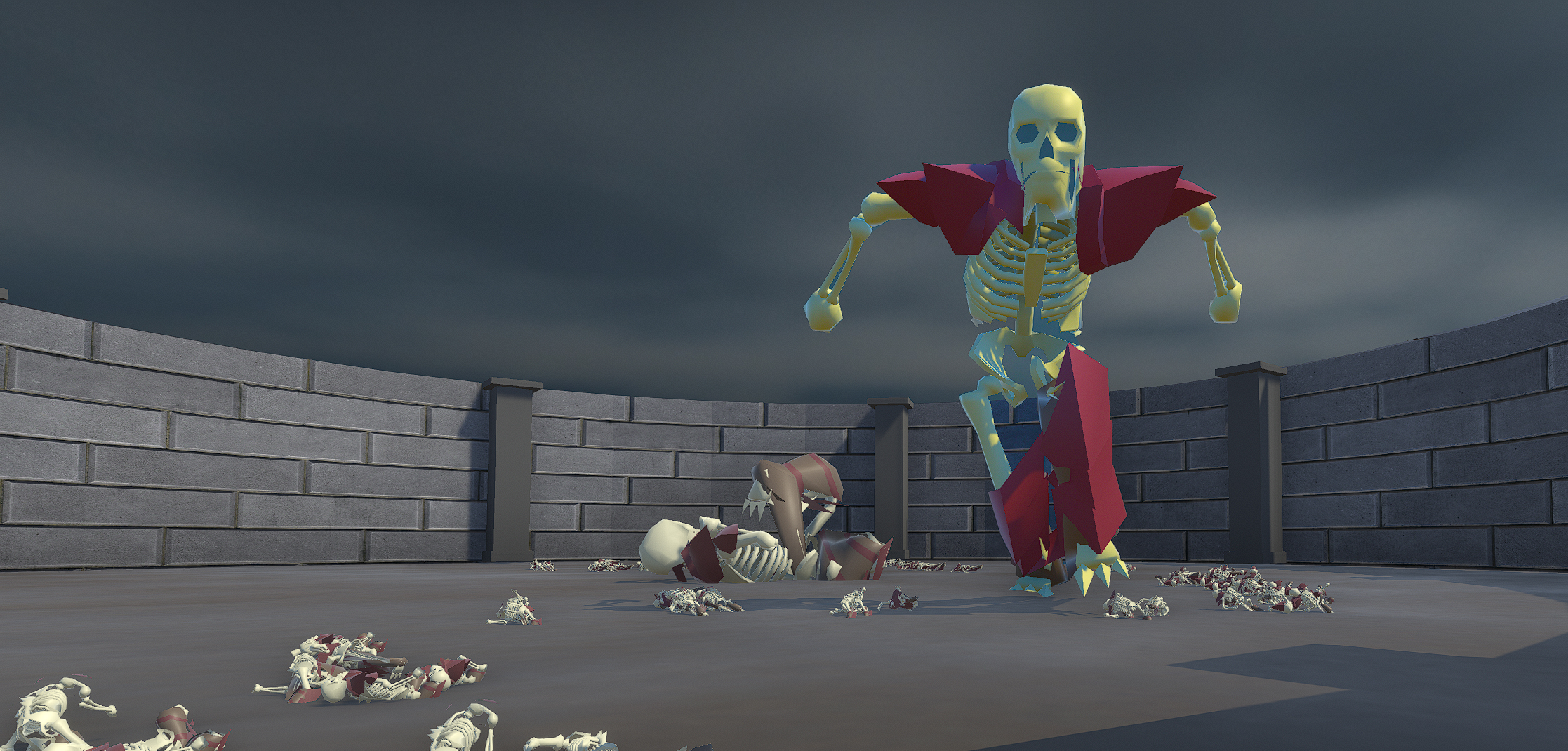 Fight waves of enemys then the boss that grow stronger after every round.
